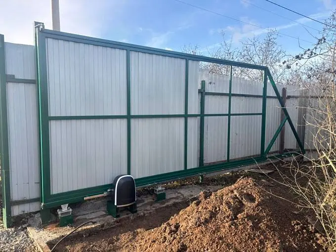 На даче откатные ворота стоят уже несколько лет, решили установить автоматику. Монтажники быстро привезли и всё настроили. Жаль раньше раньше не подумали и сразу не установили. Удобно.