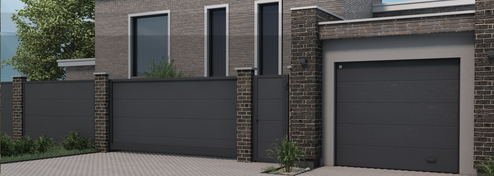 Заказывайте гаражные и въездные ворота в едином оформлении.